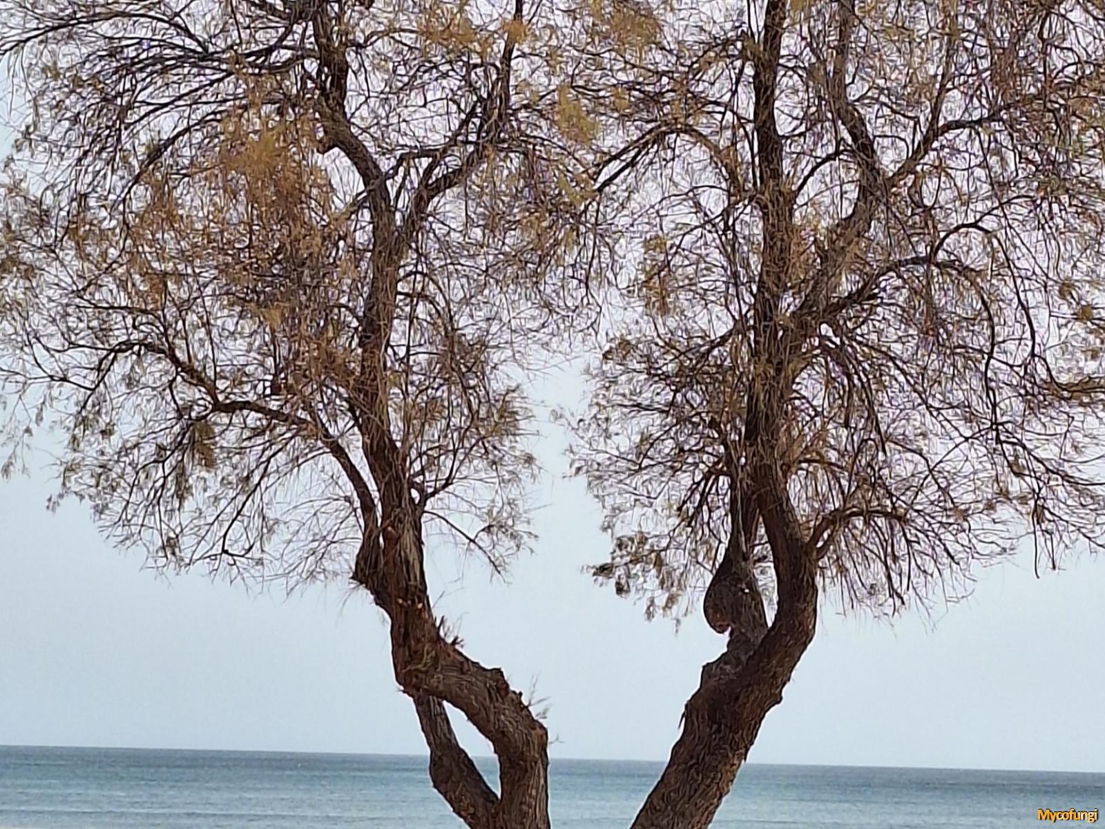 Rond middelandse zee op wondplekken van conifeer bomen.